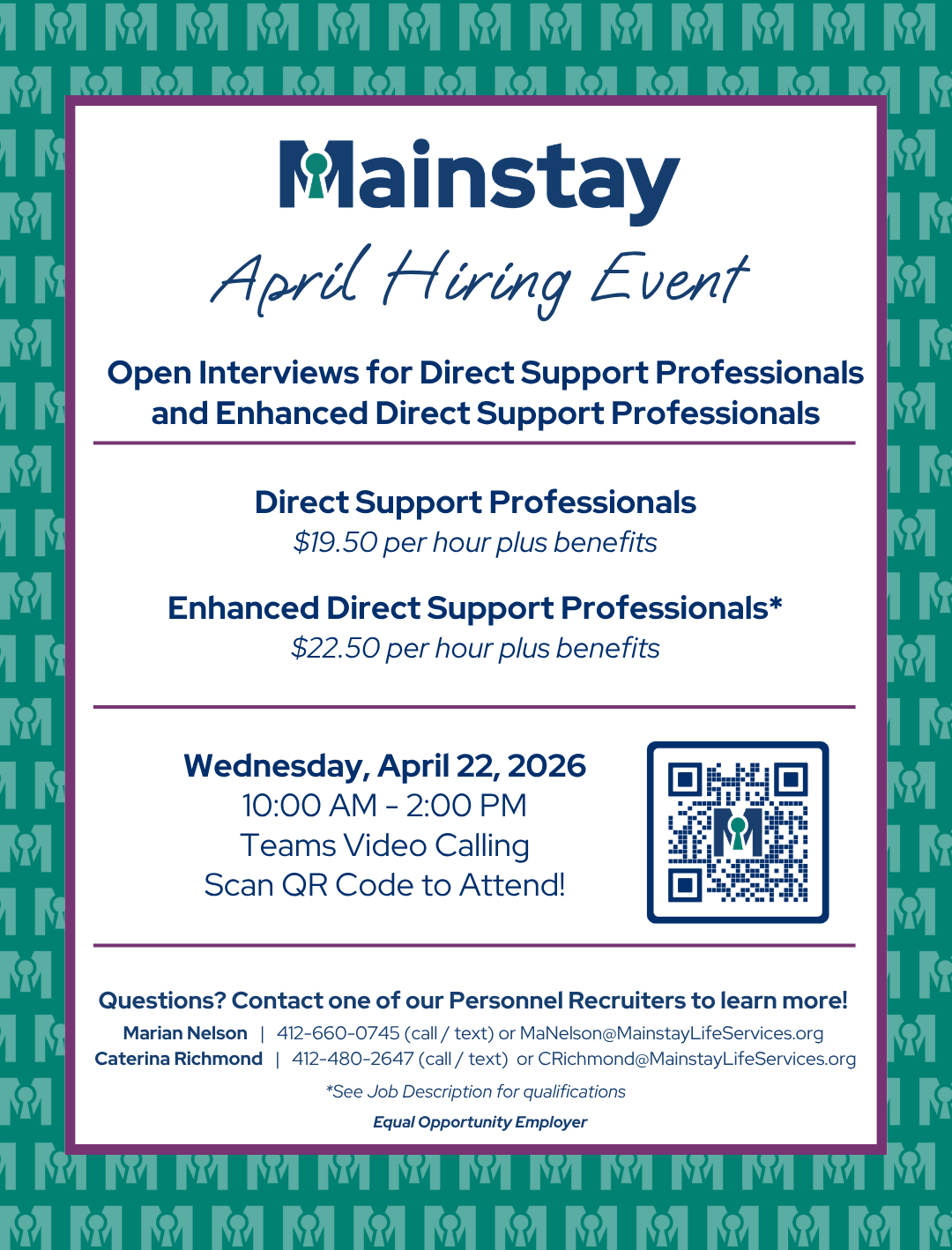 Mainstay has Direct Support Professional and other career opportunities available. See all of our job postings at the link below and apply today!