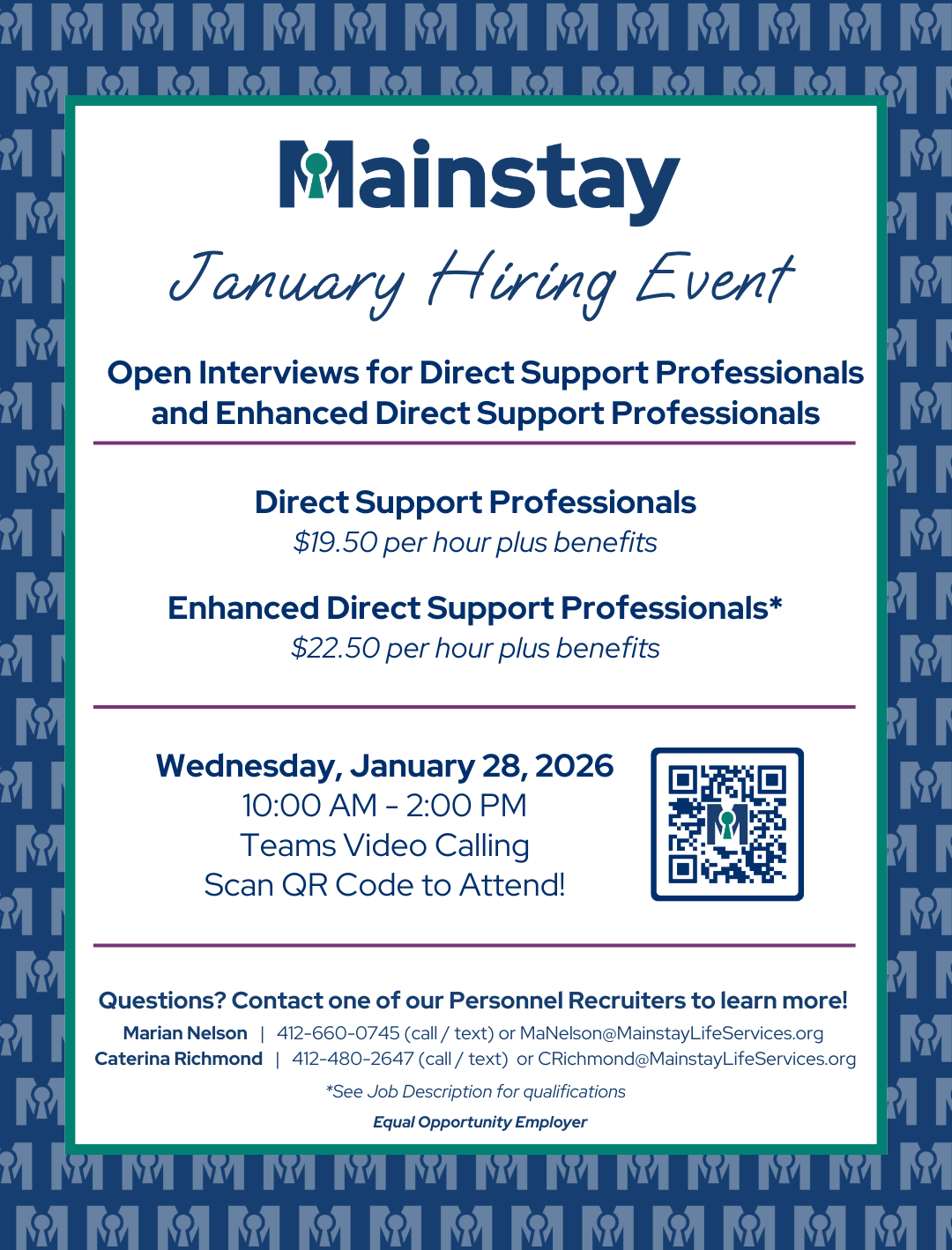 Hiring Event highlighting open interviews for Direct Support Professionals